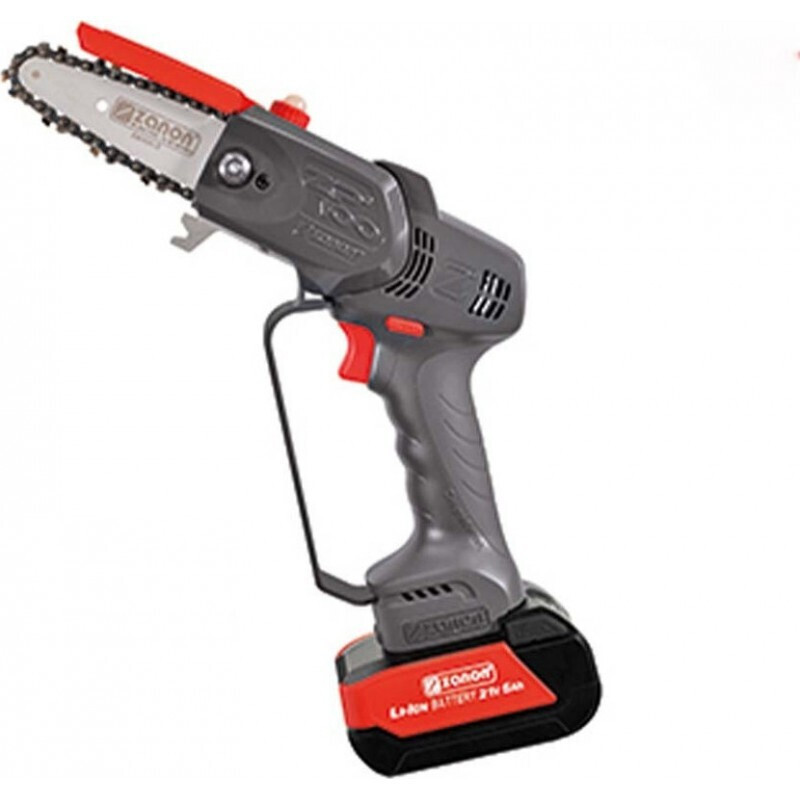 Το αλυσοπρίονο της Zanon λειτουργεί με μπαταρία 21 volt, δεν παράγει καυσαέρια και μπορείτε να κινηθείτε ελεύθερα καθώς δεν εξαρτάται από καλώδια και πρίζες. Η διάρκεια εργασίας εξαρτάται από την μπαταρία και το πόσο φορτισμένη είναι. Με βάρος 1.77 κιλά και μήκος λάμας 13cm, είναι ιδανικό για κλάδεμα δέντρων και σκάλισμα ξύλων.