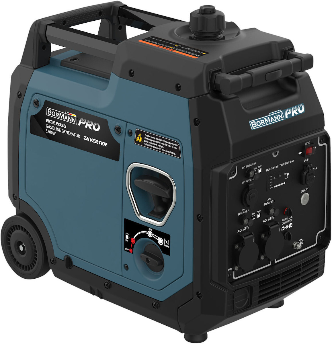 Bormann Pro BGB2035 Γεννήτρια Βαλιτσάκι Inverter Βενζίνης Τετράχρονη με Μίζα, Ρόδες και Μέγιστη Ισχύ 3.2kVA